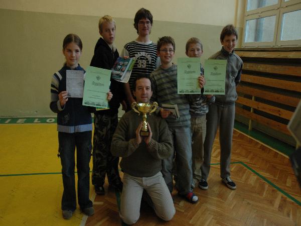 11 XI 2007. Zakończenie Zlotu w Gimanzjum nr 1. Grupa z Drzonkowa prezentuje zdobyte trofea. Fot. Ola Michalska